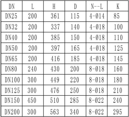 流量計(jì)采用法蘭連接方式,法蘭尺寸執(zhí)行化工部GB/T 20592-2009標(biāo)準(zhǔn),流量計(jì)外形見(jiàn)組圖4,尺寸列于表2中(此表為PN1.6MPa時(shí)的法蘭尺寸)。